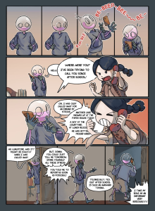 This is a test of using the traditional drawing method. A bunch of “panels” are jumbled together to create this not-very-cohesive page. But the story is not really important here.